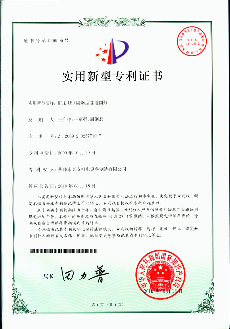 焦作景安公司始終堅(jiān)持“以科技為先導(dǎo),以市場為導(dǎo)向”的發(fā)展戰(zhàn)略,不斷進(jìn)行新產(chǎn)品的研制和開發(fā),在國家“六五”到“九五”期間,承擔(dān)和參與了國家多項(xiàng)科技攻關(guān)項(xiàng)目。并被中國電器工業(yè)協(xié)會評定為“質(zhì)量可信產(chǎn)品”。特別是在礦用防爆燈領(lǐng)域,礦用隔爆型半導(dǎo)體(LED)照明燈具,2008年列入國家火炬計(jì)劃,獲2009年河南省工業(yè)和信息化廳的科技成果二等獎,并擁有多項(xiàng)國家專利。 |